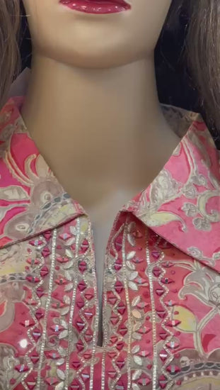 Step into effortless elegance with this peach–pink printed coord set, designed for women who love comfort without compromising on style. The outfit features a vibrant mix of floral and paisley patterns, giving it a chic yet ethnic vibe. The collared kurta with subtle detailing adds a modern twist, while the flowy matching bottoms create a coordinated, relaxed silhouette.