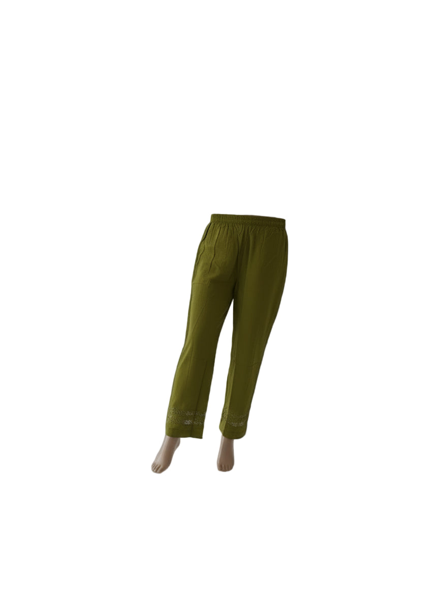 A hue inspired by nature, softness, and effortless charm â this olive green embroidered kurta set brings a refreshing calm to your wardrobe. The delicate white floral threadwork blooms gracefully along the neckline, sleeves, and hem, giving it a serene yet statement-worthy look.