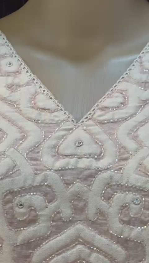 Soft Pastel Pink Threadwork Kurta Set with Dupatta