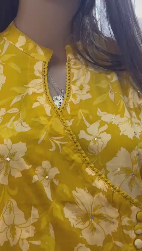 Bask in the warmth of this radiant yellow kurta set — a symphony of elegance and charm. The floral print blooms with subtle grace, while the soft cotton fabric keeps it effortlessly comfortable. Paired with a striped dupatta that adds a touch of sophistication, this look is your go-to for festive mornings or sunny brunches.